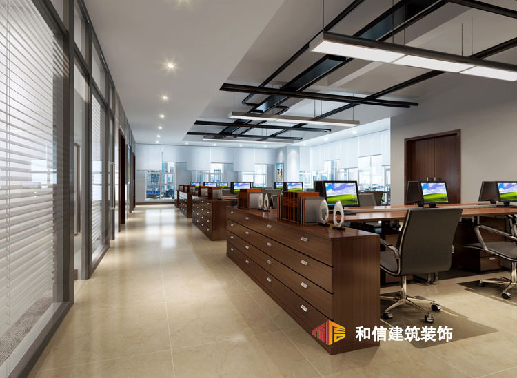 整個辦公空間空間莊重大氣,顏色體現(xiàn)著中式的古樸,傳統(tǒng)中透著現(xiàn)代,現(xiàn)代中柔和的古典,室內(nèi)空間充分利用室外光線作為載體,與空間相融合,莊重優(yōu)雅的新中式辦公桌讓辦公室多一味傳統(tǒng)的書香氣息。