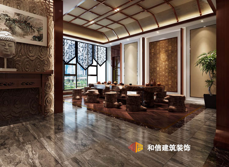 茶室講究心境與環(huán)境的契合,自然且隨性,原木桌凳的設(shè)計可以很好地傳達出中式的文雅氣息,賦予整個空間悠然質(zhì)樸之境,造型獨特的茶具、器皿匯聚陳一首古樸的韻律。