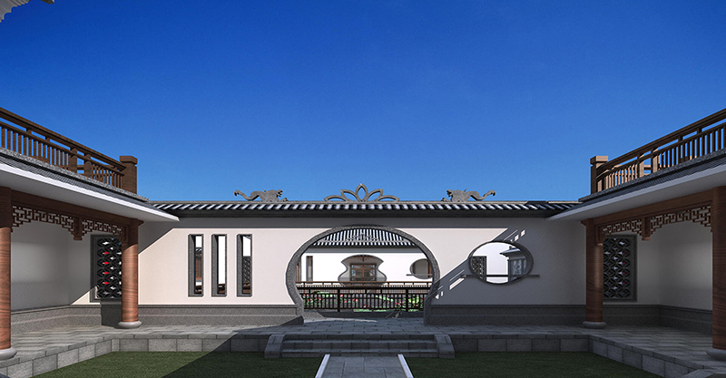項(xiàng)目名稱:仿徽派二層四合院別墅裝修建筑