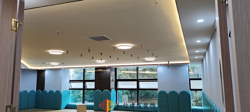 教室設(shè)計(jì)上,和信建筑采用了水鴨藍(lán)的弧形作為墻面裝飾,水鴨藍(lán)在色彩心理學(xué)中代表著可靠和積極的精神進(jìn)步,它可以激發(fā)我們的靈感,也可以撫慰心靈。